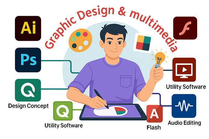 কম্পিউটার বিজ্ঞানের অন্যতম শক্তি হচ্ছে গ্রাফিক্স ডিজাইন এন্ড মাল্টিমিডিয়া । যেকোনো ধরনের পত্রিকা, ব্রশিওর, প্রকাশনা, রং-বেরঙের বিজ্ঞাপন, টিভি এডভারটাইসমেন্ট, কেবল টিভির অনুষ্ঠান, বইয়ের প্রচ্ছদ, কার্টুন, টিভি প্রোগ্রাম এবং শৈল্পিক যেকোনো কাজে আজ কম্পিউটার গ্রাফিক্স প্রফেশোনালদের হাতের ছোয়া লক্ষনীয়। গ্রাফিক্স ডিজাইন এন্ড মাল্টিমিডিয়া-এর এই বিশাল চাহিদার দিকে লক্ষ্য রেখে এডমাস মাল্টিমিডিয়া এই কোর্সে ছাত্র-ছাত্রী ভর্তি শুরু করেছে। এই কোর্সে থাকছে- এডোবি ফটোশপ, এডোবি ইলাস্ট্রেটর, কোয়ার্ক এক্সপ্রেস, এডোবি প্রিমিয়ার, ফ্ল্যাশ, কালার কনসেপ্ট, ডিজাইন কনসেপ্ট, ইউটিলিটি সফটওয়্যার-এর ব্যবহার, প্রজেক্ট ওয়ার্ক। বিস্তারিত..